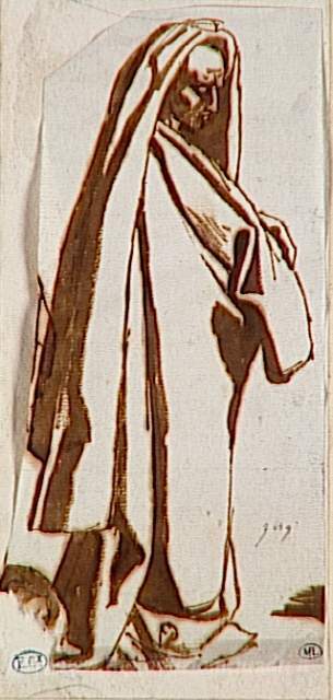 Ti offriamo una riproduzione artigianale su tela dell'opera famosa 'L'uomo in piedi drappeggiato' di Jean Auguste Dominique Ingres, dal Museo delle Riproduzioni.