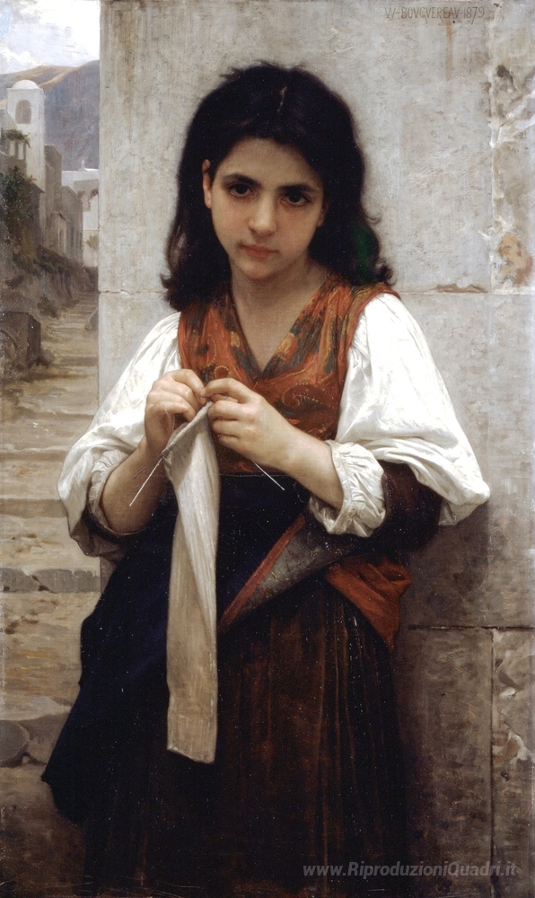 Ti offriamo una riproduzione artigianale su tela dell'opera famosa 'Macchina per maglieria' di William-Adolphe Bouguereau, dal Museo delle Riproduzioni.