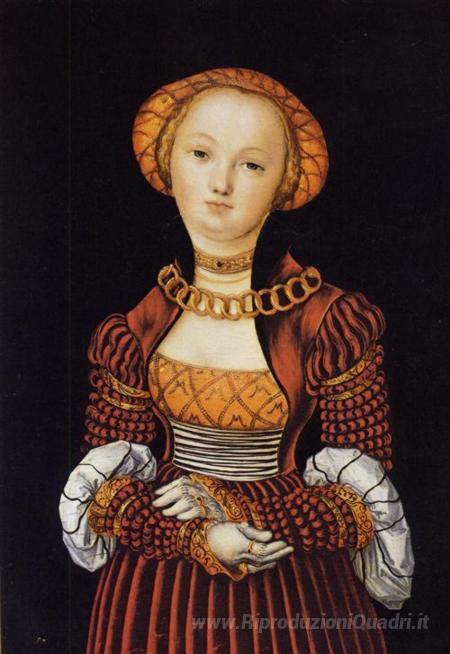 Ti offriamo una riproduzione artigianale su tela dell'opera famosa 'Maddalena von Sachsen' di Lucas Cranach the Elder, dal Museo delle Riproduzioni.