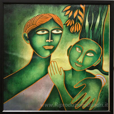 Ti offriamo una riproduzione artigianale su tela dell'opera famosa 'Madre e figlio' di Jahar Dasgupta, dal Museo delle Riproduzioni.