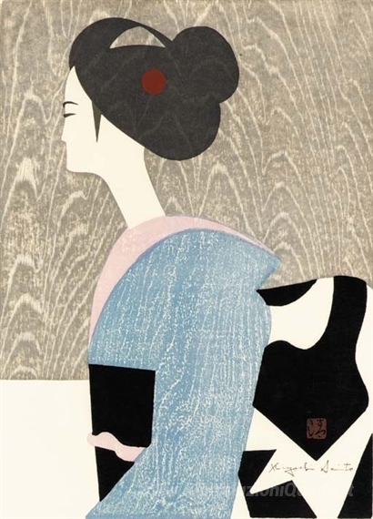 Ti offriamo una riproduzione artigianale su tela dell'opera famosa 'Maiko Kyoto (B)' di Kiyoshi Saito, dal Museo delle Riproduzioni.