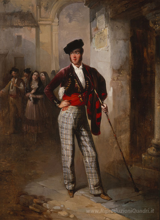 Ti offriamo una riproduzione artigianale su tela dell'opera famosa 'Majo' di Manuel Rodriguez de Guzman, dal Museo delle Riproduzioni.