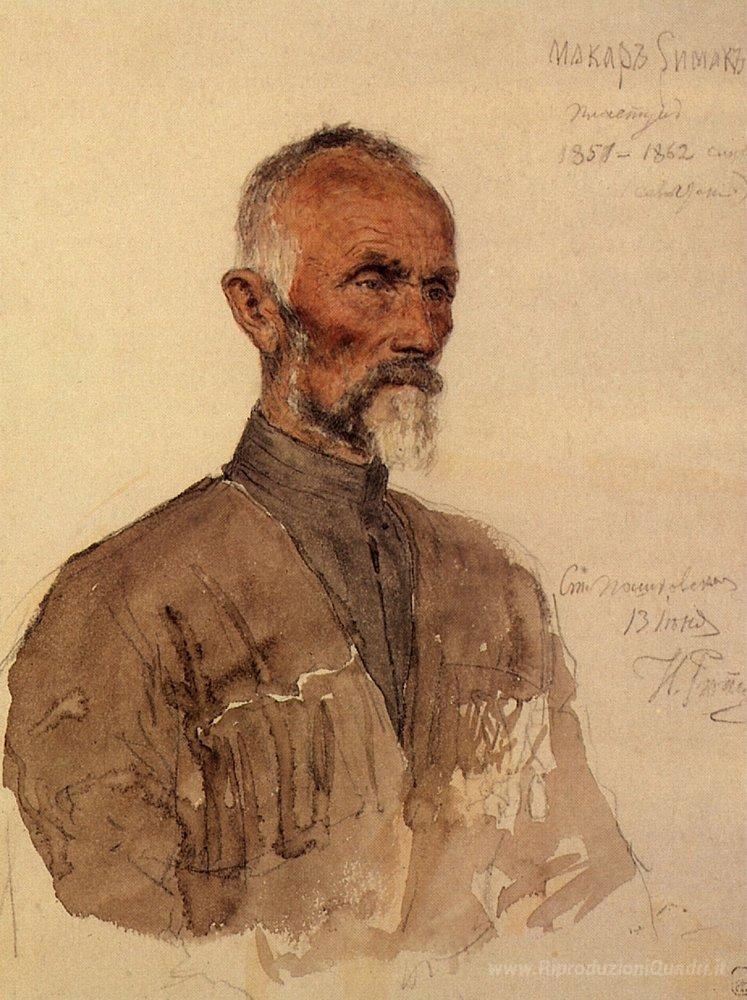 Ti offriamo una riproduzione artigianale su tela dell'opera famosa 'Makar Simak (Plastun)' di Ilya Repin, dal Museo delle Riproduzioni.