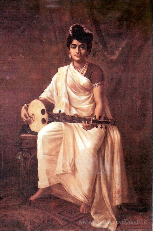 Ti offriamo una riproduzione artigianale su tela dell'opera famosa 'Malabar Lady' di Raja Ravi Varma, dal Museo delle Riproduzioni.