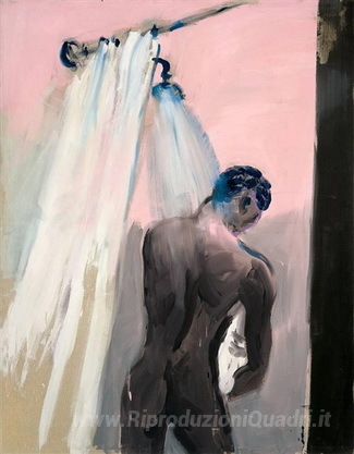 Ti offriamo una riproduzione artigianale su tela dell'opera famosa 'Mann nel Dusche' di Rainer Fetting, dal Museo delle Riproduzioni.
