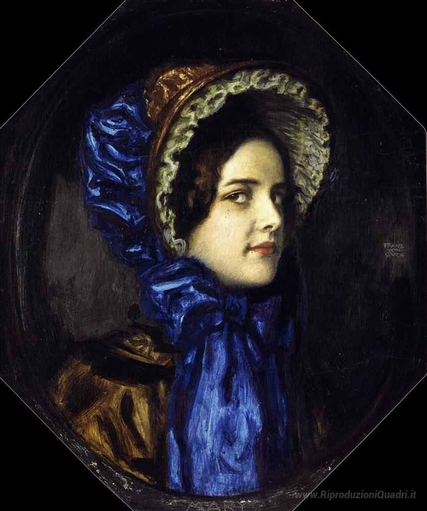 Ti offriamo una riproduzione artigianale su tela dell'opera famosa 'Maria con Biedermeier capanna' di Franz Stuck, dal Museo delle Riproduzioni.