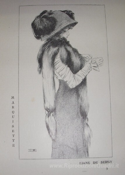 Ti offriamo una riproduzione artigianale su tela dell'opera famosa 'Marquisette' di Raphael Kirchner, dal Museo delle Riproduzioni.