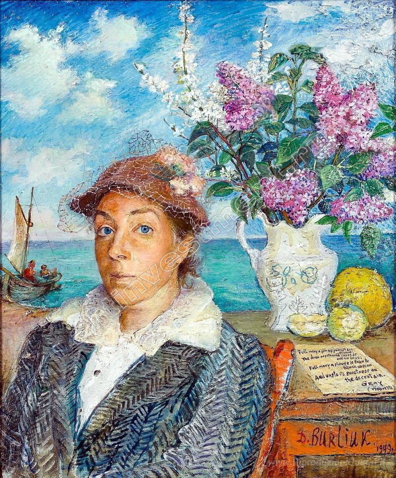 Ti offriamo una riproduzione artigianale su tela dell'opera famosa 'Marusia in riva al mare' di David Burliuk, dal Museo delle Riproduzioni.