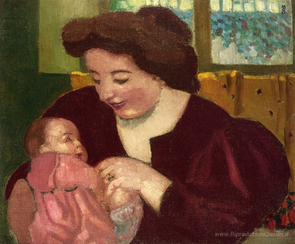 Ti offriamo una riproduzione artigianale su tela dell'opera famosa 'Maternite, Anne Marie et Marthe a la Bague Ovale' di Maurice Denis, dal Museo delle Riproduzioni.