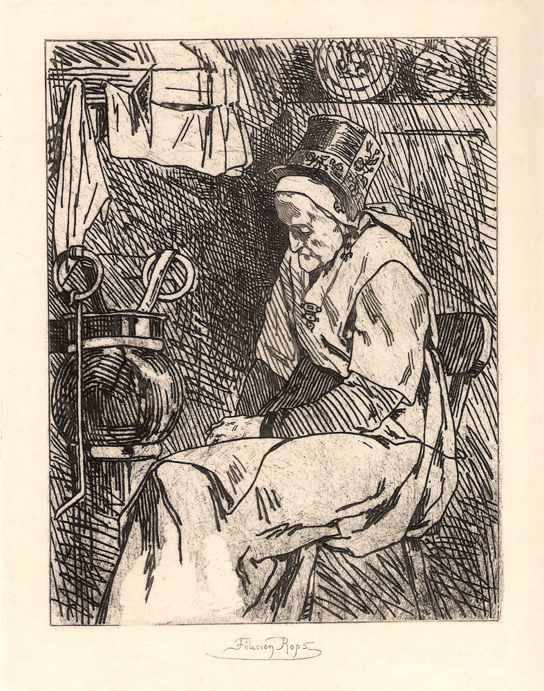 Ti offriamo una riproduzione artigianale su tela dell'opera famosa 'Mia zia Johanna' di Felicien Rops, dal Museo delle Riproduzioni.