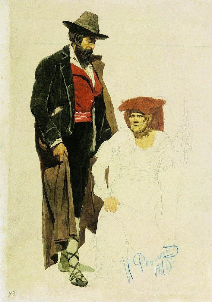 Ti offriamo una riproduzione artigianale su tela dell'opera famosa 'Modelli italiani' di Ilya Repin, dal Museo delle Riproduzioni.