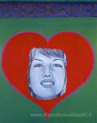Ti offriamo una riproduzione artigianale su tela dell'opera famosa 'Monica Vitti con cuore' di Pauline Boty, dal Museo delle Riproduzioni.