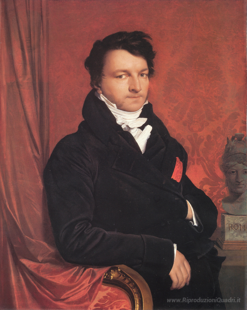 Ti offriamo una riproduzione artigianale su tela dell'opera famosa 'Monsieur de Norvins' di Jean Auguste Dominique Ingres, dal Museo delle Riproduzioni.