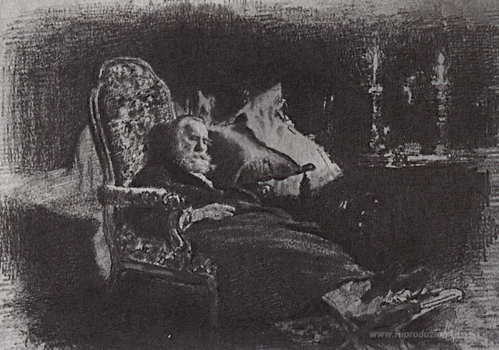 Ti offriamo una riproduzione artigianale su tela dell'opera famosa 'Morte di Fedor Chizhov' di Ilya Repin, dal Museo delle Riproduzioni.