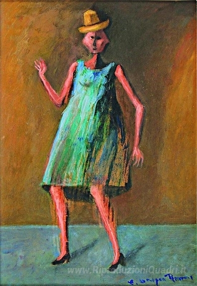 Ti offriamo una riproduzione artigianale su tela dell'opera famosa 'Mujer con sombrero-mu?equita' di Carlos Orozco Romero, dal Museo delle Riproduzioni.