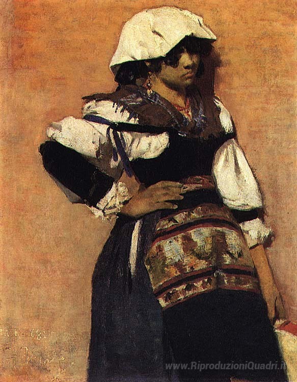 Ti offriamo una riproduzione artigianale su tela dell'opera famosa 'Napolitana' di Henrique Pousao, dal Museo delle Riproduzioni.