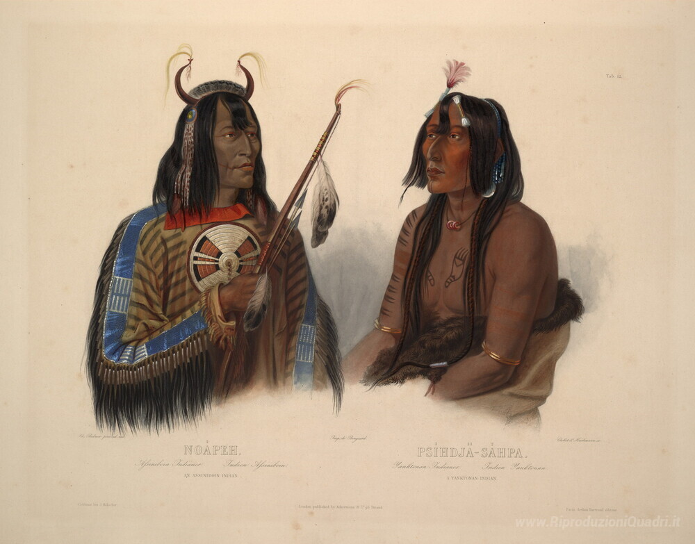 Ti offriamo una riproduzione artigianale su tela dell'opera famosa 'Noapeh, un indiano e Psihdja Assiniboin-Sahpa, un Yanktonan indi' di Karl Bodmer, dal Museo delle Riproduzioni.