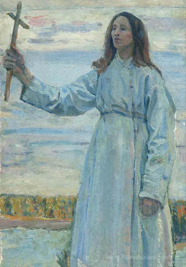 Ti offriamo una riproduzione artigianale su tela dell'opera famosa 'Novizio con una croce' di Mikhail Nesterov, dal Museo delle Riproduzioni.