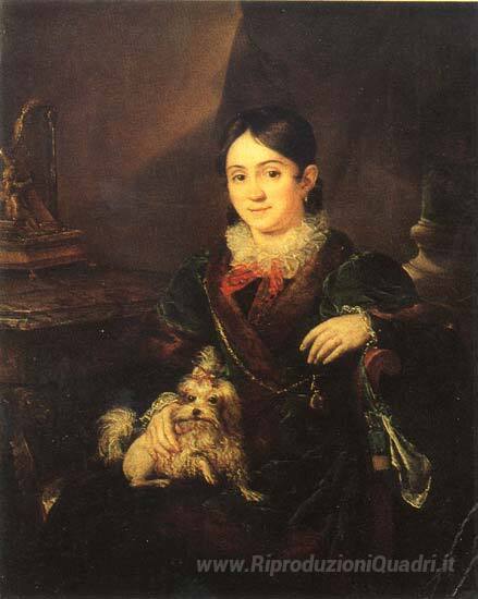 Ti offriamo una riproduzione artigianale su tela dell'opera famosa 'Obolenskaya NA' di Vasily Tropinin, dal Museo delle Riproduzioni.