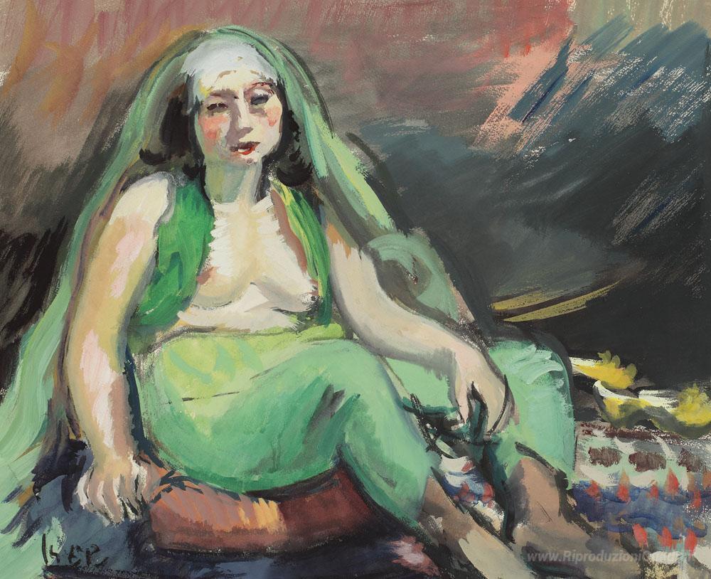 Ti offriamo una riproduzione artigianale su tela dell'opera famosa 'Odalisca in Green' di Iosif Iser, dal Museo delle Riproduzioni.