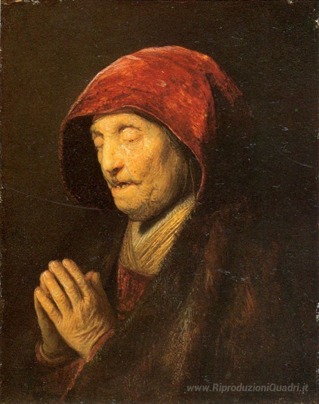 Ti offriamo una riproduzione artigianale su tela dell'opera famosa 'Old Woman in preghiera' di Rembrandt, dal Museo delle Riproduzioni.