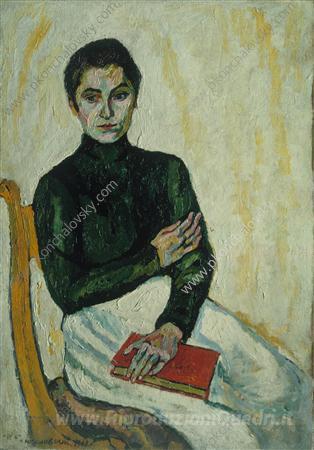 Ti offriamo una riproduzione artigianale su tela dell'opera famosa 'Pasha con il libro rosso (su bianco)' di Pyotr Konchalovsky, dal Museo delle Riproduzioni.