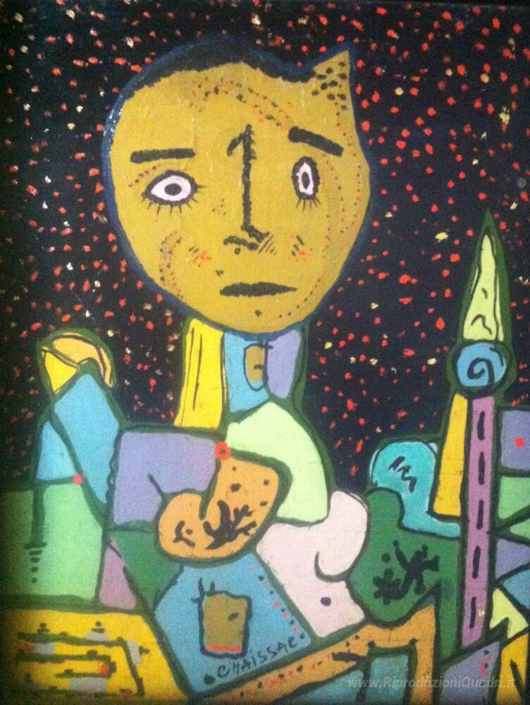 Ti offriamo una riproduzione artigianale su tela dell'opera famosa 'Personnage sur fond étoilé nocturne' di Gaston Chaissac, dal Museo delle Riproduzioni.