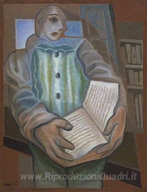 Ti offriamo una riproduzione artigianale su tela dell'opera famosa 'Pierrot con il libro' di Juan Gris, dal Museo delle Riproduzioni.