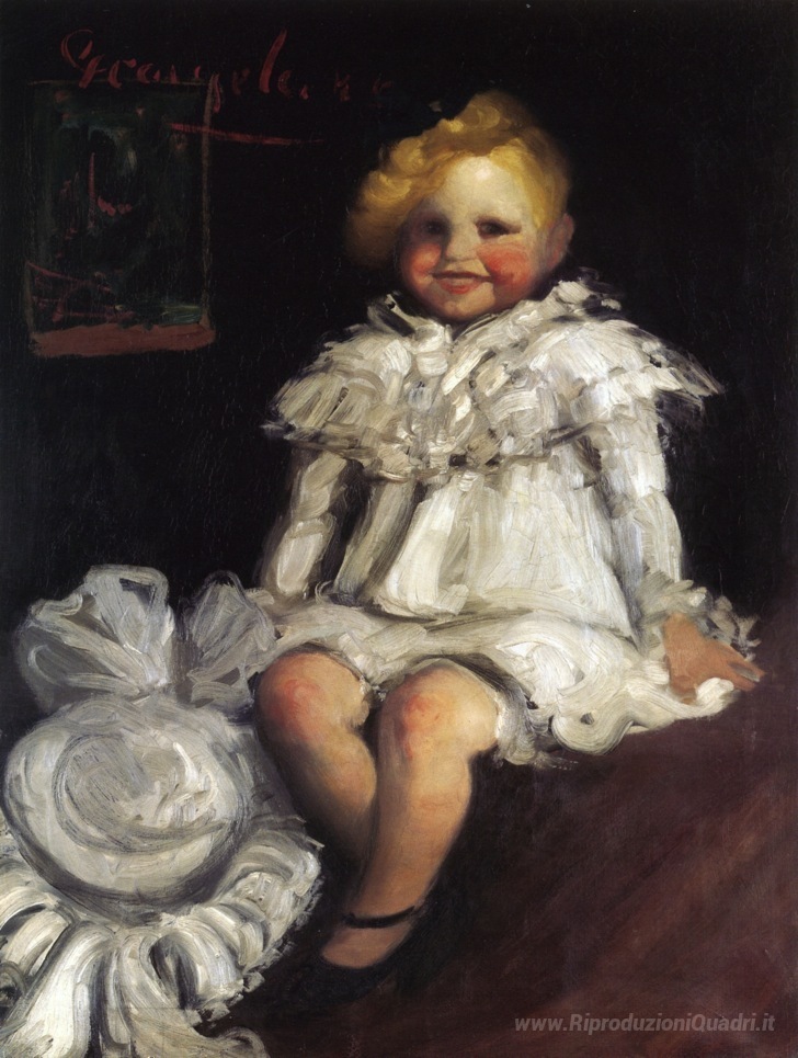 Ti offriamo una riproduzione artigianale su tela dell'opera famosa 'Poco Lore con il suo cappello' di George Luks, dal Museo delle Riproduzioni.