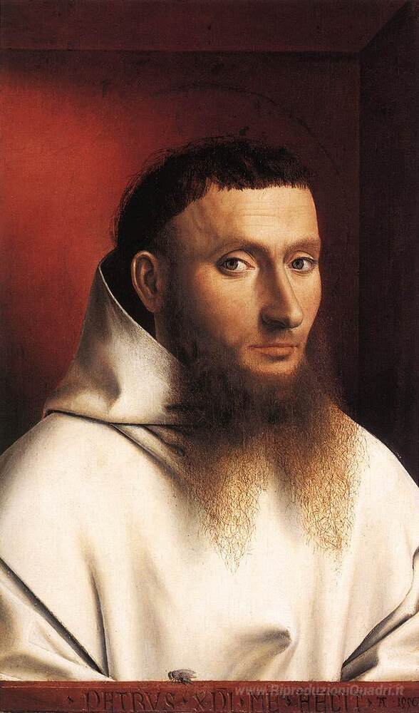 Ti offriamo una riproduzione artigianale su tela dell'opera famosa 'Potrait di un certosino' di Petrus Christus, dal Museo delle Riproduzioni.