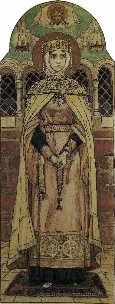 Ti offriamo una riproduzione artigianale su tela dell'opera famosa 'Principessa Eudossia' di Viktor Vasnetsov, dal Museo delle Riproduzioni.