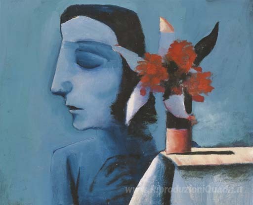 Ti offriamo una riproduzione artigianale su tela dell'opera famosa 'Ragazza con i fiori' di Charles Blackman, dal Museo delle Riproduzioni.