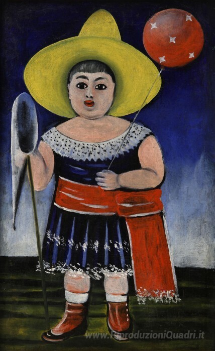 Ti offriamo una riproduzione artigianale su tela dell'opera famosa 'Ragazza con un Baloon' di Niko Pirosmani, dal Museo delle Riproduzioni.
