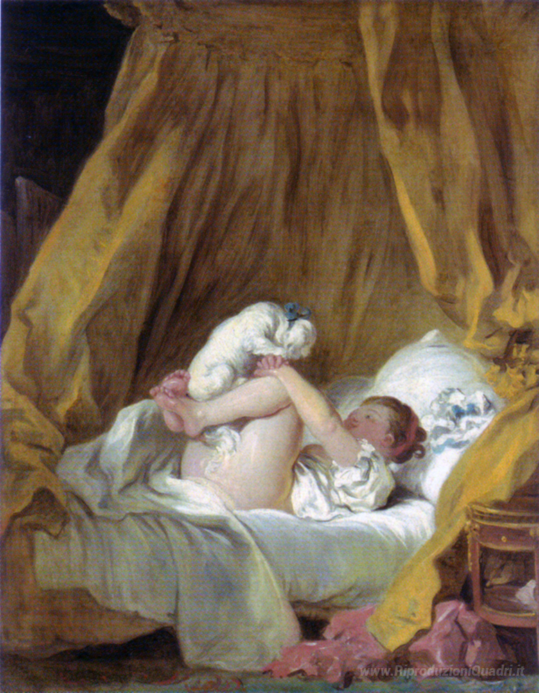 Ti offriamo una riproduzione artigianale su tela dell'opera famosa 'Ragazza con un cane' di Jean-Honore Fragonard, dal Museo delle Riproduzioni.