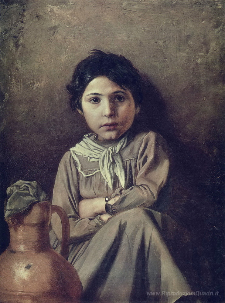 Ti offriamo una riproduzione artigianale su tela dell'opera famosa 'Ragazza con una brocca' di Vasily Perov, dal Museo delle Riproduzioni.