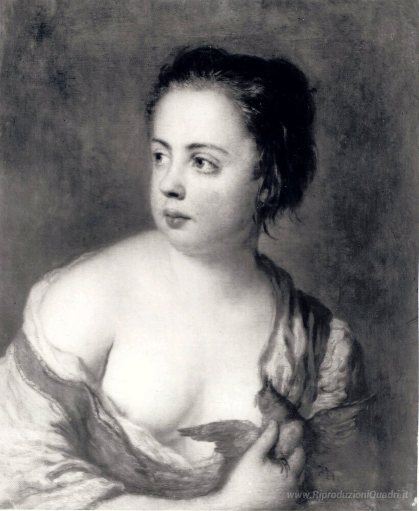 Ti offriamo una riproduzione artigianale su tela dell'opera famosa 'Ragazza con una colomba' di Antoine Pesne, dal Museo delle Riproduzioni.