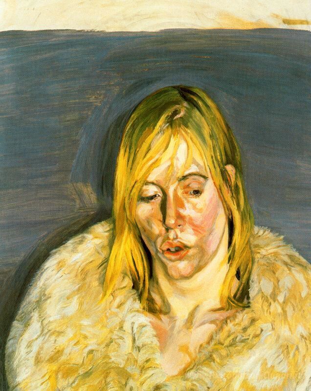 Ti offriamo una riproduzione artigianale su tela dell'opera famosa 'Ragazza in un cappotto di pelliccia' di Lucian Freud, dal Museo delle Riproduzioni.