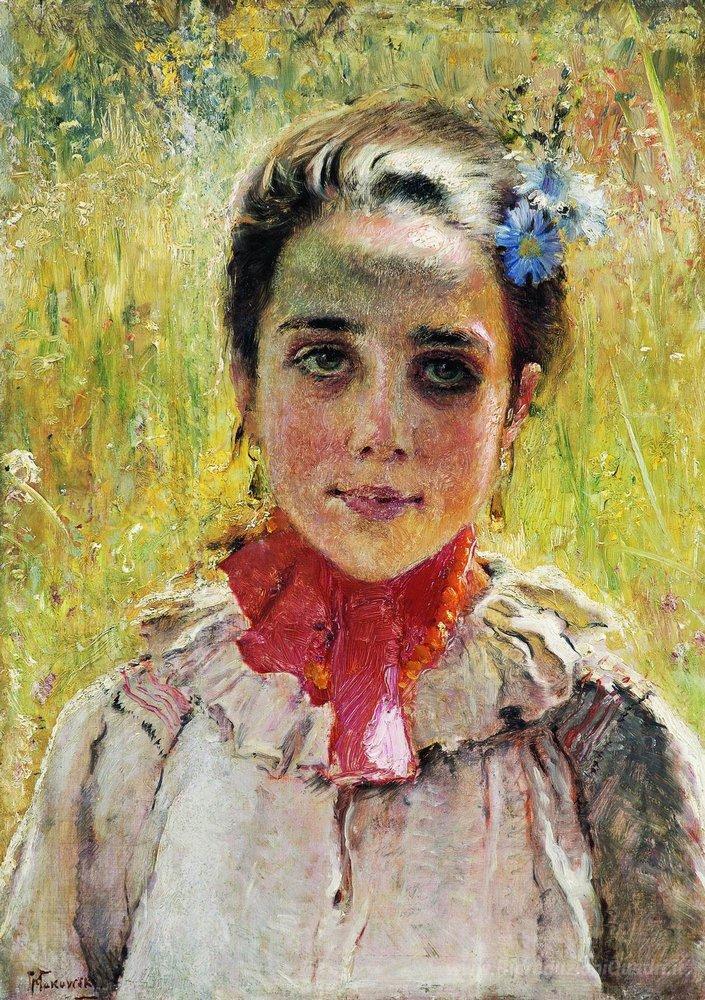 Ti offriamo una riproduzione artigianale su tela dell'opera famosa 'Ragazza nel campo' di Konstantin Makovsky, dal Museo delle Riproduzioni.
