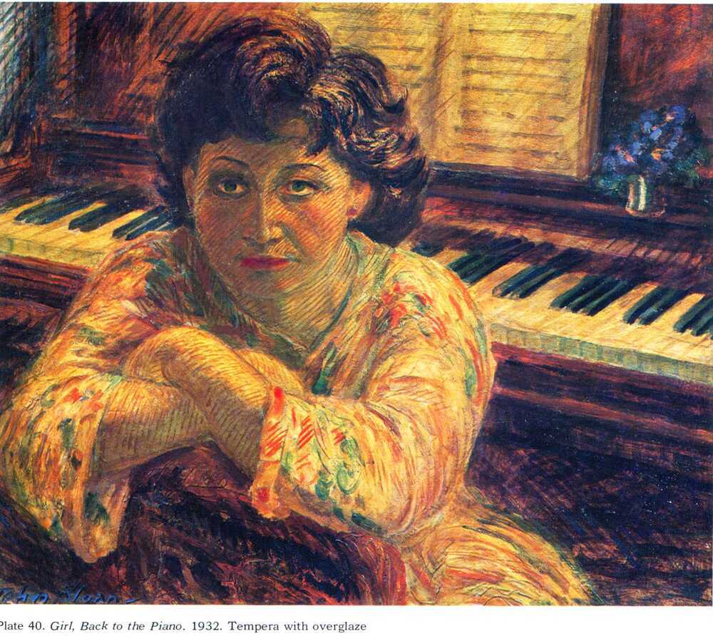 Ti offriamo una riproduzione artigianale su tela dell'opera famosa 'Ragazza, Ritorno al Piano' di John French Sloan, dal Museo delle Riproduzioni.