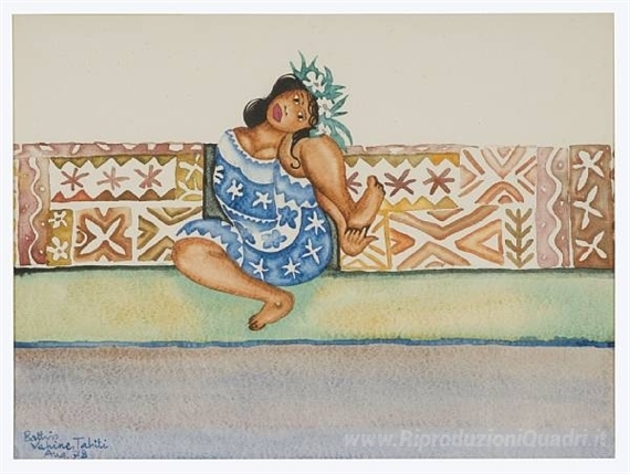 Ti offriamo una riproduzione artigianale su tela dell'opera famosa 'Ragazza Tahitian' di Walter Battiss, dal Museo delle Riproduzioni.