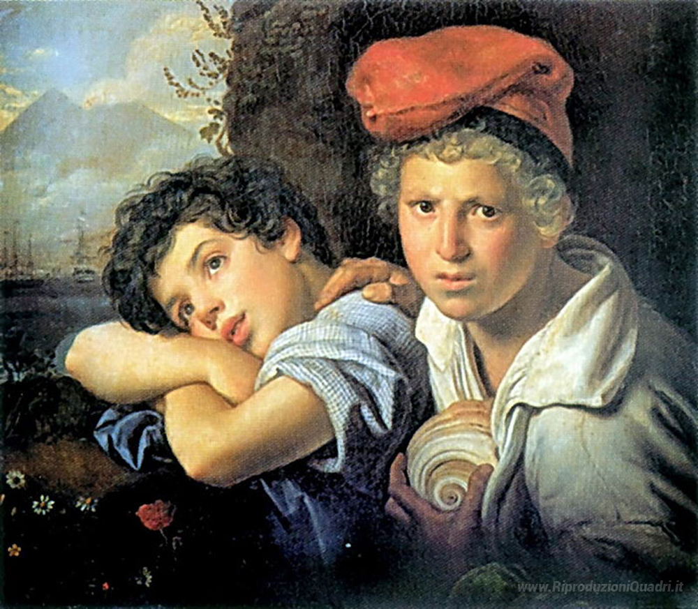 Ti offriamo una riproduzione artigianale su tela dell'opera famosa 'Ragazzi pescatori napoletani' di Orest Kiprensky, dal Museo delle Riproduzioni.