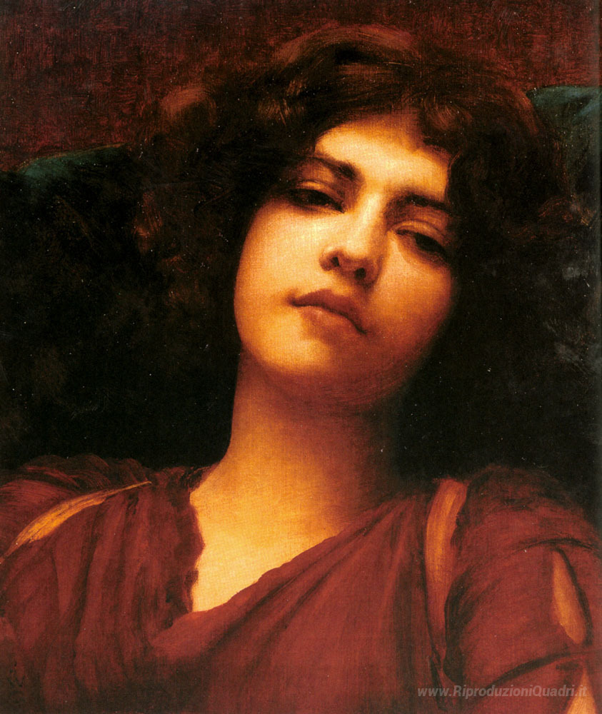 Ti offriamo una riproduzione artigianale su tela dell'opera famosa 'Reverie (studio)' di John William Godward, dal Museo delle Riproduzioni.