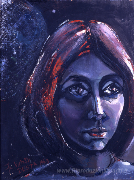 Ti offriamo una riproduzione artigianale su tela dell'opera famosa 'Ricordando Marga' di Gebre Kristos Desta, dal Museo delle Riproduzioni.