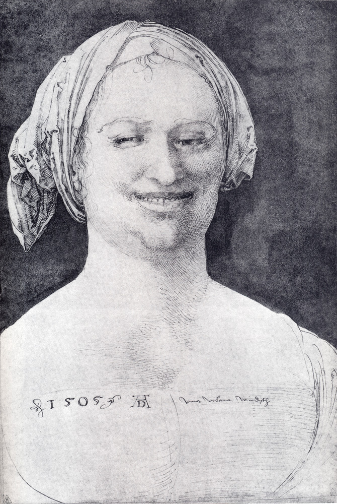 Ti offriamo una riproduzione artigianale su tela dell'opera famosa 'Ridere Contadina' di Albrecht Durer, dal Museo delle Riproduzioni.
