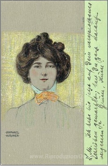 Ti offriamo una riproduzione artigianale su tela dell'opera famosa 'Ritratti di signore di Vienna' di Raphael Kirchner, dal Museo delle Riproduzioni.