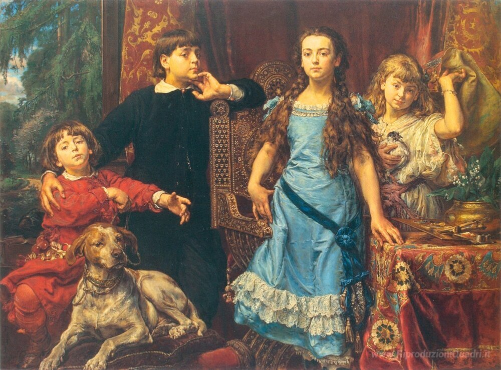 Ti offriamo una riproduzione artigianale su tela dell'opera famosa 'Ritratto dei artist`s quattro figli' di Jan Matejko, dal Museo delle Riproduzioni.