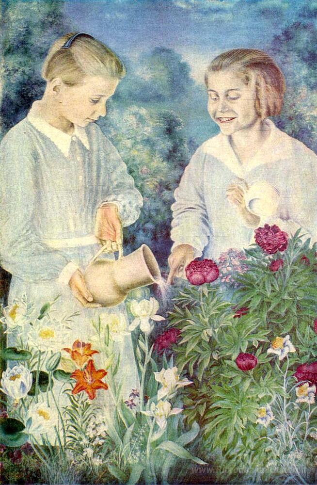 Ti offriamo una riproduzione artigianale su tela dell'opera famosa 'Ritratto dei nipoti' di Kateryna Bilokur, dal Museo delle Riproduzioni.