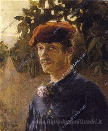 Ti offriamo una riproduzione artigianale su tela dell'opera famosa 'Ritratto del fratello dell'artista, Maxim Petrovic, con tappo' di Pyotr Konchalovsky, dal Museo delle Riproduzioni.