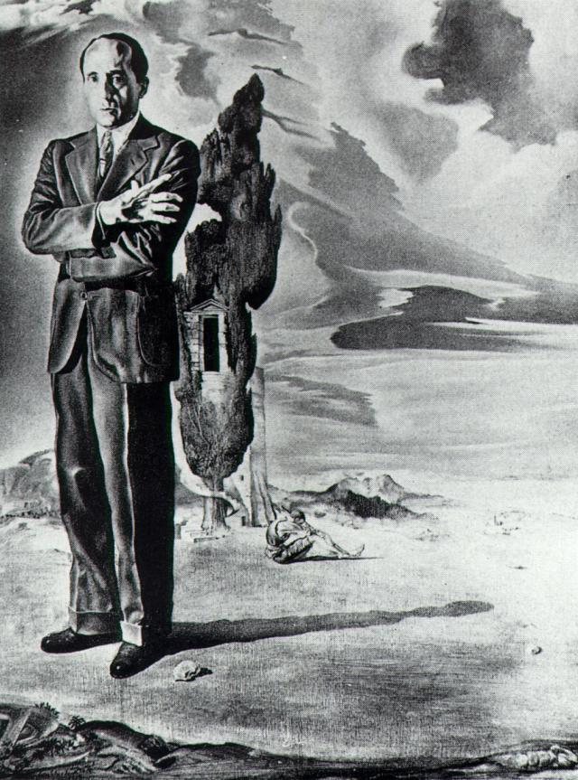 Ti offriamo una riproduzione artigianale su tela dell'opera famosa 'Ritratto del marchese De Cuevas' di Salvador Dali, dal Museo delle Riproduzioni.