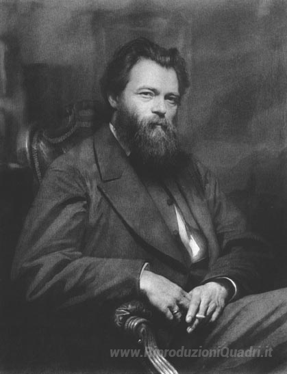 Ti offriamo una riproduzione artigianale su tela dell'opera famosa 'Ritratto del pittore Ivan Shishkin' di Ivan Kramskoy, dal Museo delle Riproduzioni.